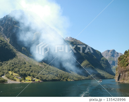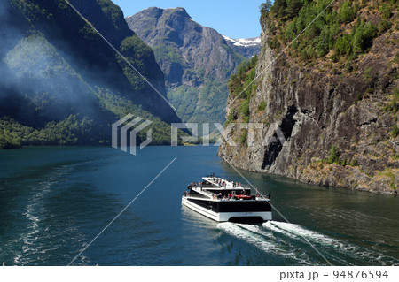 ノルウェーのフィヨルド峡谷を走る遊覧船