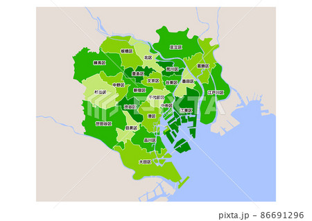 東京23区の地図のベクターイラスト素材カラー