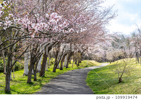 函館市民の森に咲く桜と小道