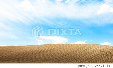青空と雲と北海道美瑛町にある広大な畑のシンプルな風景