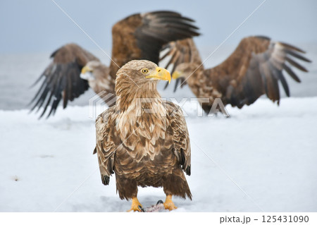 冬に北海道の知床半島や釧路湿原で見られる大きな猛禽、勇敢で格好良い空の王者オジロワシ