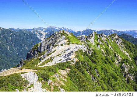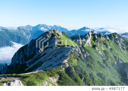 夏の北アルプス燕岳から望む北燕岳方面 長野県大町市 安曇野市