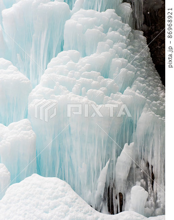 厳冬の景色 ダイナミックな凍った滝 大禅滝の大氷柱