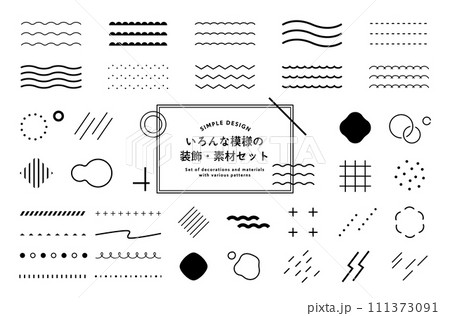 色々な模様の飾り・装飾のイラストセット あしらい 素材 アイコン デザイン 幾何学 図形 おしゃれ