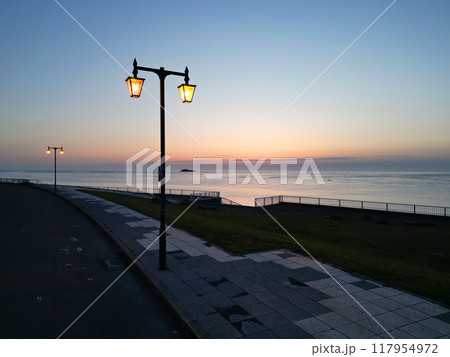 日本最北端の地、宗谷岬の夕景の空撮