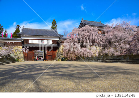 長野県上田市 上田城跡公園の北櫓と東虎口櫓門と満開桜