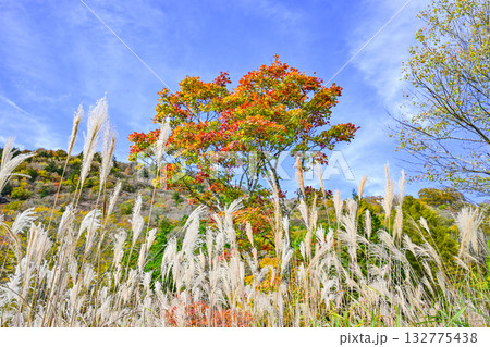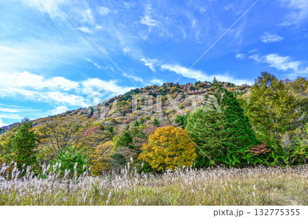 紅葉し始めの茶臼山高原の風景(愛知県)