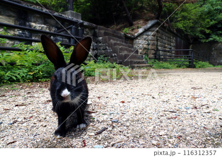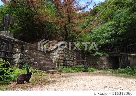 大久野島:北部砲台遺址の野生ウサギ(広島県竹原市忠海町)