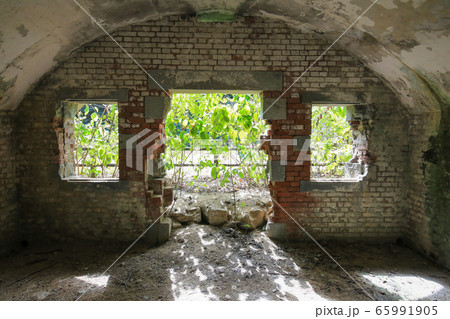 大久野島の北部砲台跡の兵舎内部 広島県竹原市忠海町