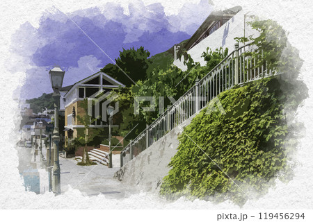 水彩画風 神戸 石畳の小径 兵庫県神戸市