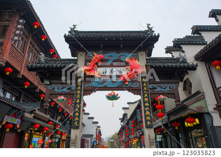 中国 南京市の繁華街、南京夫子廟にある牌楼、古秦淮西牌坊