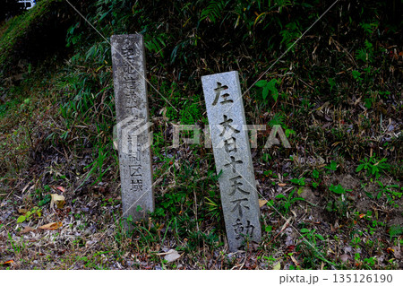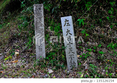 山の辺の道 行先表示 石碑 大日十天不動 と 石碑 宅地造成工事規制区域