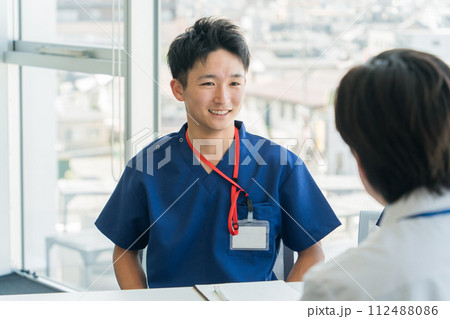 新人看護師に指導する易しい看護師の先輩や医師のイメージ
