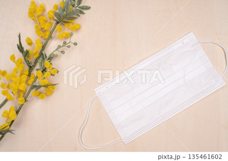 ミモザと使い捨てマスク 花粉症やアレルギーの季節イメージ