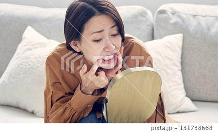 歯や歯茎の確認 口内炎 女性イメージ