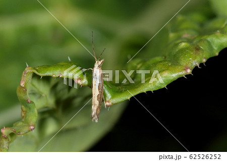 生き物 昆虫 コナガ、幼虫は黄緑色半透明の青虫でキャベツ等アブラナ科作物の重要害虫。農家の敵!