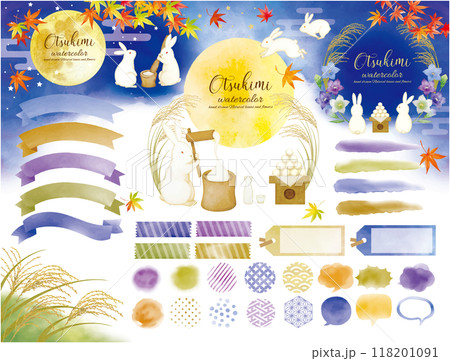 かわいい中秋の名月の素材セット