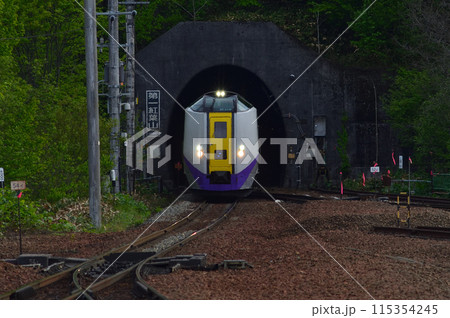 新夕張駅近くの第一紅葉山トンネルから顔を出した特急「とかち」