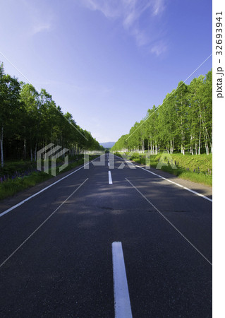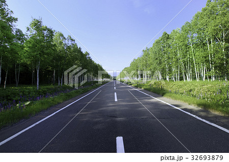 まっすぐな道 白樺並木 十勝三股