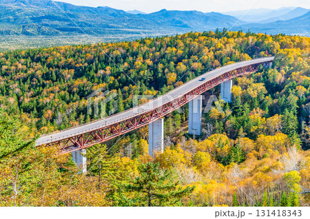 北海道 三国峠 紅葉に染まる松見大橋