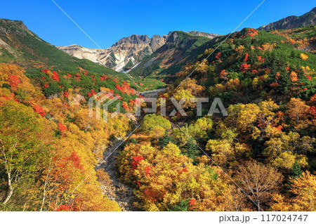 十勝岳登山道より十勝岳温泉郷の紅葉