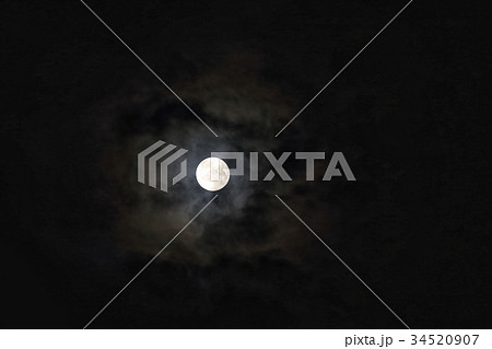 自然 風景 月、立秋の満月。薄い雲を透して見るまん丸のお月様