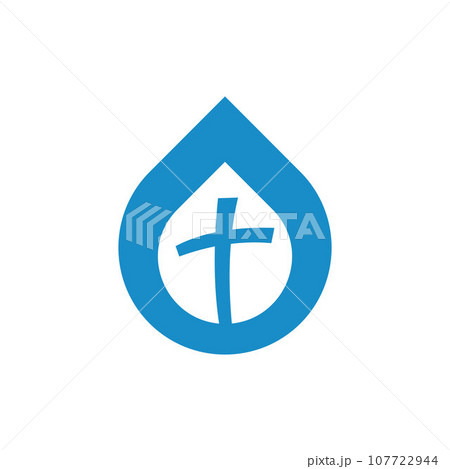 Faith Christian religion logo with cross and flame. Pentecostal Holy Spirit. Stock vector illustration isolated on white background.