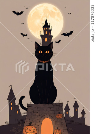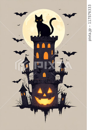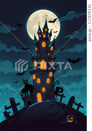 ハロウィン〜満月に飛ぶコウモリと不気味な城〜