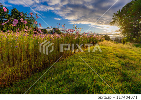 スローシャッターによるコスモスの花のデザイン的表現素材