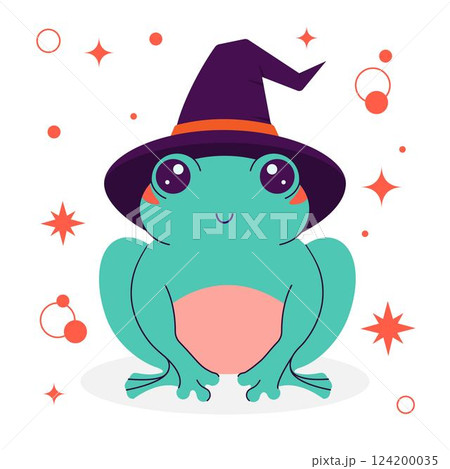 A picture of cartoon magic frog with hat for Halloween, vector illustration. A picture of witch magic frog with hat for halloween
