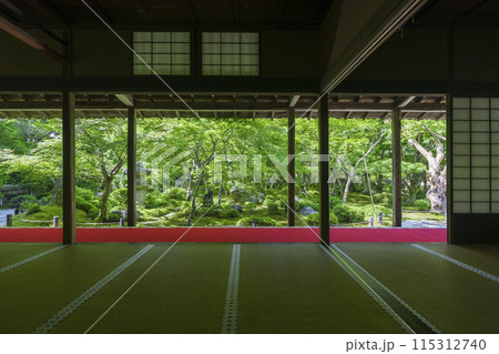 圓光寺の風景 書院から見た新緑の庭園 京都府京都市