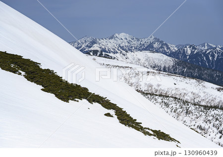 乗鞍岳から望む3月の穂高岳、槍ヶ岳