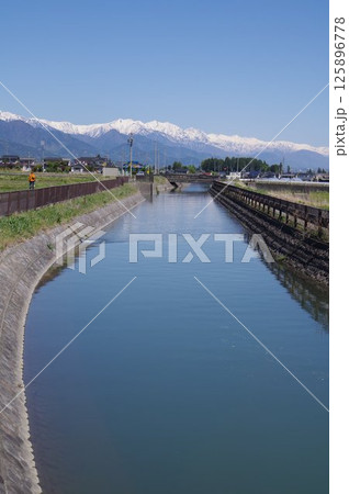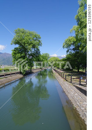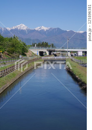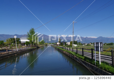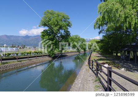 信州安曇野の灌漑施設「拾ヶ堰(じっかせぎ)」風景 安曇野を潤した江戸時代開削の用水路(下飯田地区)