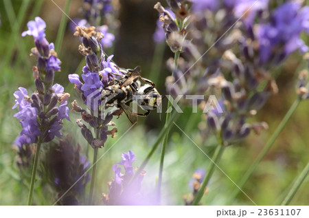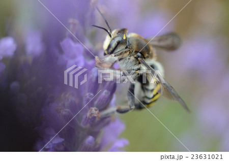 ラベンダーの蜜を吸うトモンハナバチ・十紋花蜂