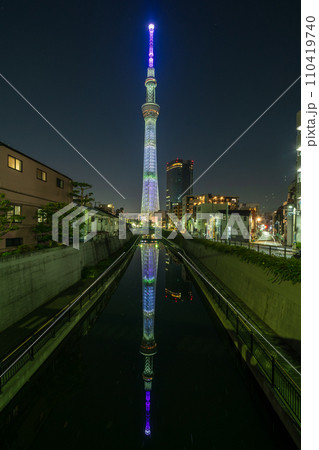 「東京都」十間橋から眺めるライトアップの東京スカイツリー 夜景