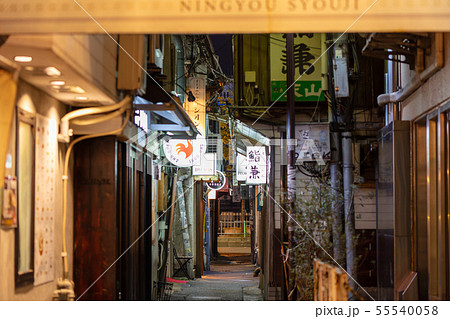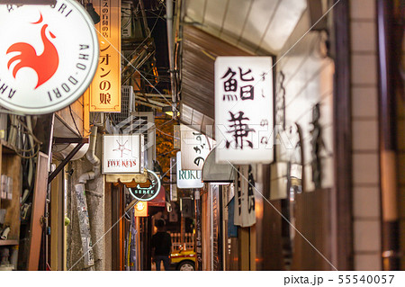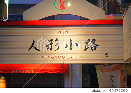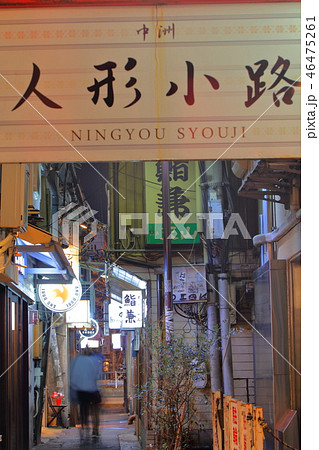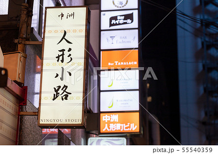 歓楽街中洲の路地(人形小路)の風景(提灯・看板)福岡県福岡市博多区の歓楽街中洲