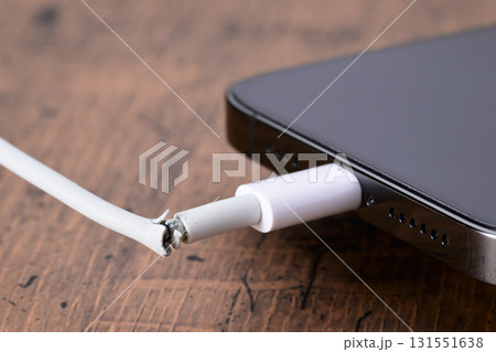 充電コードのイラスト シンプル おしゃれ 破線 故障
