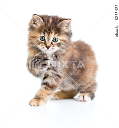 Kuril bobtail tortoiseshell coat coloring cat with paw up