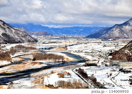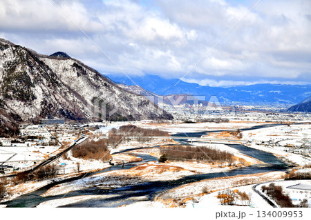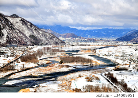 上田市より千曲川沿いに坂城町、上山田温泉方面を望む(長野県坂城町、千曲市)【2023.2】
