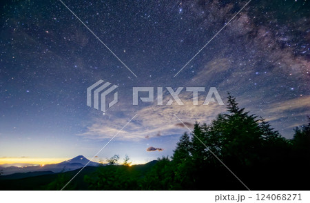 日本の鳥取県の大山に浮かぶ美しい春の星空