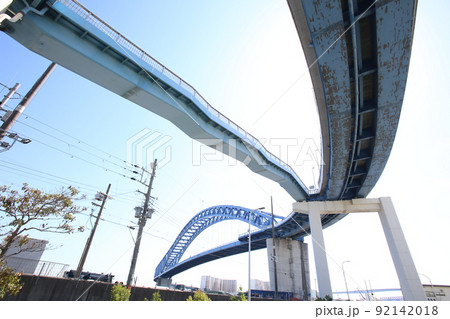 なみはや大橋 千歳橋 大正区 大阪市内風景 倉庫 資材置き場 昭和山 トラス建築 大阪湾風景
