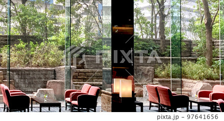 ガラス張りのオシャレなカフェ-奥行き-