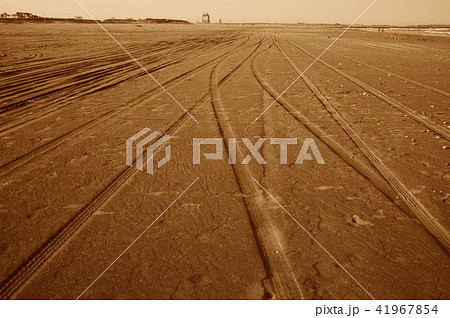 砂浜 ビーチ タイヤの跡 轍 海辺
