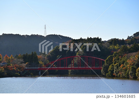 紅葉の亀山湖 亀山大橋にて
