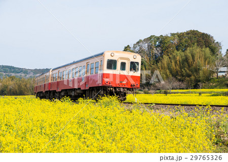 小湊鐵道「菜の花一面に咲く沿線風景を走る列車」
