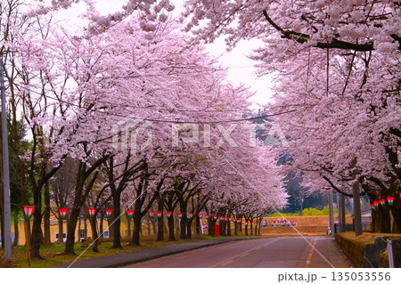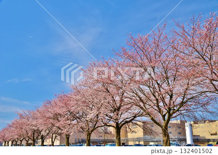 満開に咲く新潟県小千谷市千谷工業団地の桜