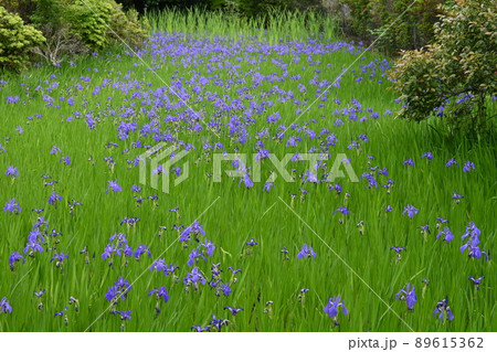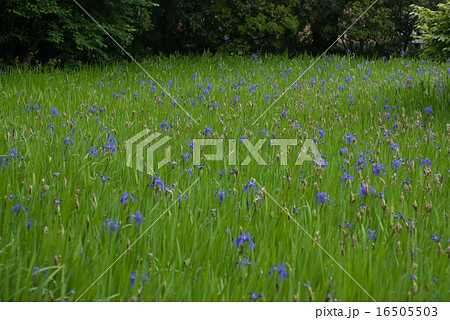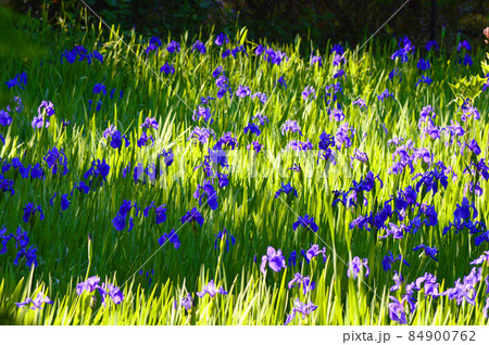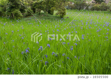 5月晴れの朝、京都市北区大田神社のカキツバタ群落が綺麗