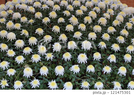 白い菊の群生をクローズアップ