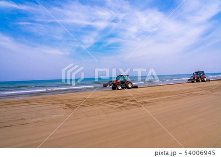 (石川県)千里浜なぎさドライブウェイ 砂浜を整地するショベルカー
