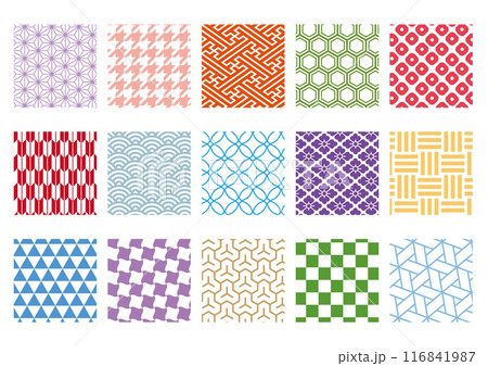 矢絣やエ霞など14種の和柄シームレスパターンセット、伝統的な和風背景素材